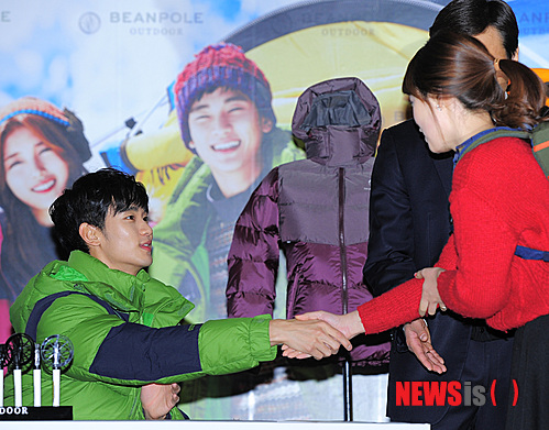 【서울=뉴시스】전진환 기자 = 28일 오후 배우 김수현이 자신이 모델로 활동중인 패션브랜드 빈폴 아웃도어 '스키도우2 구스다운' 홍보차 서울 영등포구 타임스퀘어 중앙광장에서 팬사인회를 갖고 있다. 2013.11.28.