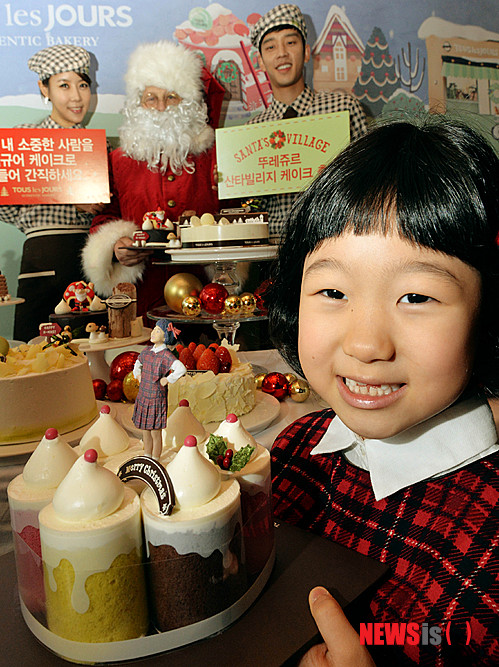 【서울=뉴시스】 박문호 기자 = 19일 오전 서울 중구 쌍림동 뚜레쥬르 CJ제일제당점에서 열린 뚜레쥬르 '산타빌리지‘ 크리스마스 케이크 38종 출시 행사에서 어린이가 자신의 피규어로 장식된 케이크를 선보이고 있다. 2013.12.19.
