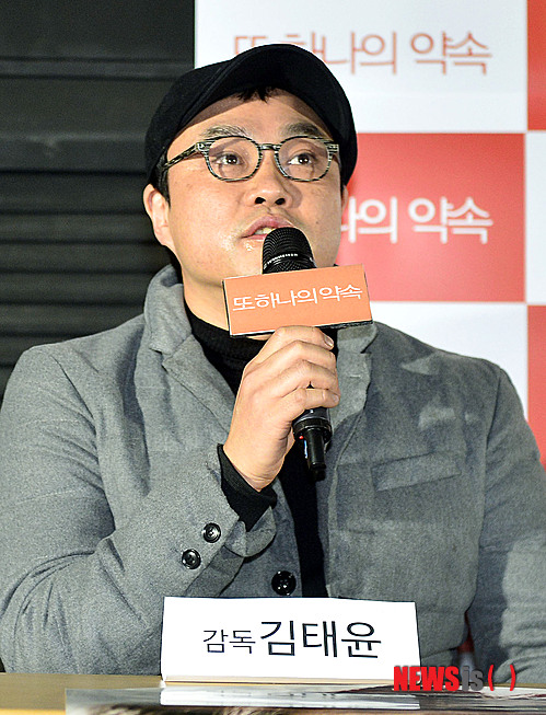 【서울=뉴시스】최동준 기자 = 20일 오후 서울 왕십리 CGV에서 열린 영화 '또 하나의 약속' 시사회에서 김태윤 감독이 소감을 말하고 있다.