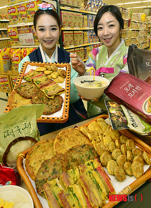 【서울=뉴시스】최동준 기자 = 이마트가 22일 오전 서울 이마트 용산점에서 간편가정식 떡국떡을 비롯해 명절 차례상에 오르는 각종 전을 선보이고 있다.