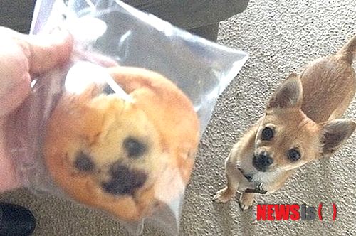 【서울=뉴시스】미국 캘리포니아 라메사에 거주하는 캘린 벨(14)은 대형마트에서 구입한 블루베리 머핀이 애완견인 치와와와 너무 닮아 놀랐다.(사진출처: 허핑턴포스트)