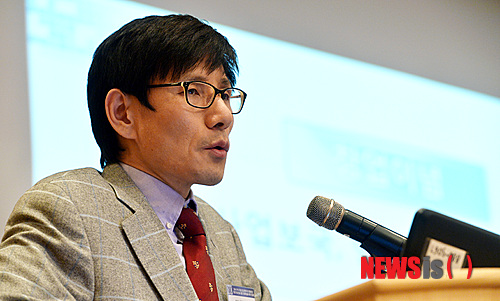 【서울=뉴시스】강진형 기자 = 박범주 삼성전자 첨단기술연구소 상무가 6일 오후 서울 관악구 낙성대동 서울대 호암교수회관 무궁화홀에서 열린 '제4회 2014 우수기업 최고경영자 초청 기업가 정신을 갖춘 인재 육성을 위한 간담회'에서 강연을 하고 있다. 2014.02.06.