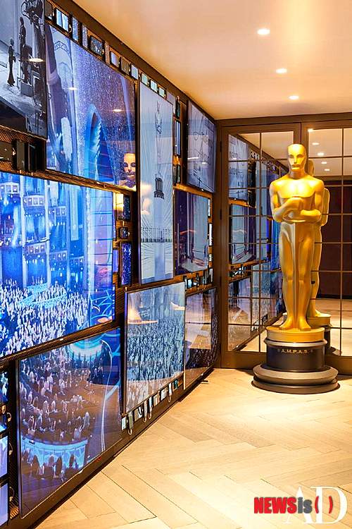 올해 아카데미 시상식의 그린룸 프로젝트를 맡은 AD의 디자이너 데이비드 록웰은 아카데미 시상식 86회를 기념해 널리 알려진 영화 속 상징적인 장면 86개를 86개의 삼성 제품에 담아 벽면을 디자인했다. 2014.03.02. (사진=삼성전자 제공)