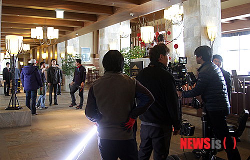 【평창=뉴시스】홍춘봉 기자 = 강원 평창군 알펜시아 리조트가 MBC 새 주말드라마 '호텔킹' 의 메인 배경으로 전파를 타게 된다. 사진은 지난 5일 진행한 드라마 '호텔킹'의 촬영 장면. 2014.03.13. (사진=알펜시아 제공)