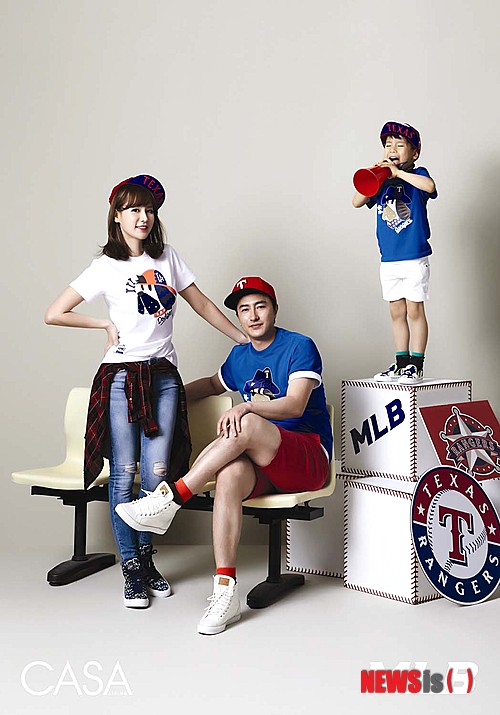 MLB KIDS(엠엘비 키즈)와 리빙 매거진 까사리빙, 초록우산 재단이 함께 한 이번 ‘그린라벨 캠페인’ 화보는 MLB 키즈 공식 홈페이지(www.mlb-kids.com)와 까사리빙 4월호를 통해 만나볼 수 있으며 전국 MLB KIDS 매장에서도 배포 중이다. 사진은 안정환 가족 (왼쪽부터) 이혜원, 안정환, 안리환. 2014.03.21. (사진=MLB 제공)