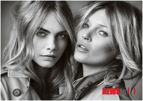 【서울=뉴시스】유희연 기자 = 영국 명품 브랜드 버버리가 2일 선보인 여성용 향수 '마이 버버리(My Burberry)'의 캠페인에 캐스팅된 모델 카라 델레바인(왼쪽)과 케이트 모스. 2014.09.02. (사진=버버리 제공)
