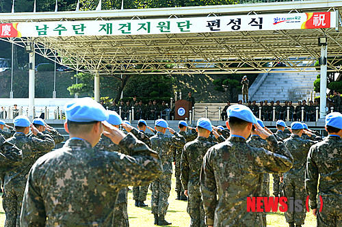 지난 2013년 3월 유엔의 요청으로 오랜 내전으로 황폐해진 남수단에 희망의 빛을 심어주고 있는 한빛부대는 현지인으로부터 '신이 내린 축복'이라는 칭송을 받고 있다. 평균 4.8:1의 높은 경쟁을 뚫고 선발된 정예요원 291명은 편성식 후 인도적 지원과 민군작전 수행을 위해 5주간 태권도·사물놀이와 전술 훈련 등 교육을 받고 오는 10월 말 파병된다. 2014.09.23.