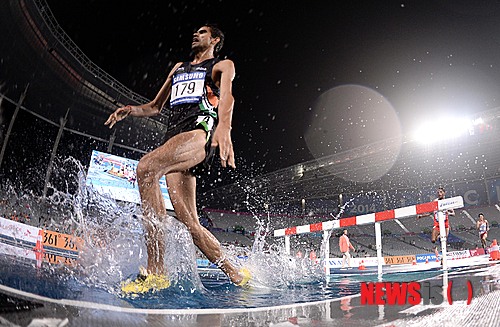 【인천=뉴시스】김인철 기자 = 29일 오후 인천아시아드주경기장에서 열린 2014 인천아시안게임 육상 남자 3000m 장애물달리기 결승전에서 참가선수들이 힘차게 장애물을 뛰어넘고 있다. 2014.09.29.