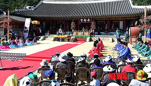 【수원=뉴시스】강종민 기자 = 12일 오전 경기 수원 화성(華城)행궁 봉수당에서 정조대왕의 어머니인 혜경궁 홍씨의 진찬연이 재연되고 있다. 진찬연은 사도세자의 부인인 혜경궁 홍씨의 회갑연이다. 2014.10.12