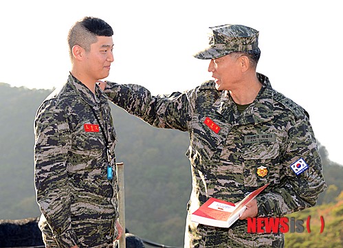【서울=뉴시스】김진아 기자 = 이영주 해병대사령관이 지난 27일 인천 강화도 서측도서 최북단 해병부대를 찾아 장병들을 격려하고 있다.