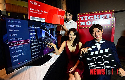 '국내 최초 개봉관'은 IPTV서비스 올레tv를 통해 극장을 거치지 않은 국내외 화제작들을 시청자에게 선공개하는 기획 상설관으로 워너브라더스, 소니픽쳐스, 월트디즈니컴퍼니코리아 등 해외 메이저 배급사들이 대거 참여했다. 2014.11.05.