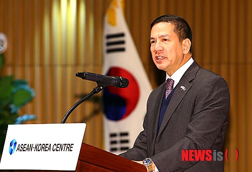 【서울=뉴시스】조수정 기자 = 3일 서울시청에서 열린 한-아세안 특별정상회의 축하 ‘한-아세안 청년포럼’에서 라울 헤르난데즈 주한 필리핀 대사가 기조연설 하고 있다.