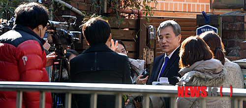 【서울=뉴시스】박주성 기자 = 4일 오후 서울 통의동 모 식당에서 지난 대선때 박근혜캠프에서 활동했던 이상돈 중앙대 명예교수가 취재진들의 질문에 답하고 있다. 이날 박근혜 캠프에서 일했던 국가미래연구원의 김광두 원장과 문재인 캠프의 김호기 연세대 교수, 안철수 캠프의 장하성 고려대 교수도 모임에 참석했다. 2014.12.04.