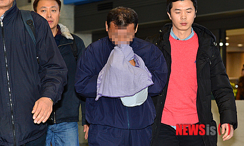 【인천공항=뉴시스】조종원 기자 = 주부 등 일반인을 마약운반책으로 삼았던 마약밀수범 전모 씨가 10년만에 붙잡혀 국내로 송환된 17일 오후 인천국제공항을 통해 검찰로 압송되고 있다.