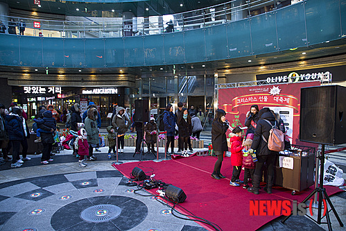 【서울=뉴시스】박주성 기자 = 지난 20일 합정역 인근에 위치한 복합몰 메세나폴리스몰에서 중앙광장에서 지역민과 고객들이 참여한 가운데 크리스마스선물 팡팡 대축제를 진행했다. 2014.12.21. (사진=메세나폴리스몰 제공)
