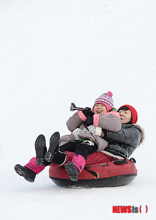 【서울=뉴시스】조수정 기자 = 21일 오후 '2014 겨울 눈꽃 대축제'가 열리고 있는 서울 광진구 능동 어린이회관 눈썰매장에서 시민들이 눈썰매를 즐기고 있다. 어린이회관 눈썰매장은 2015년 2월 22일까지 개장하며 오전 9시 30분부터 오후 5시까지 운영된다. 2014.12.21.