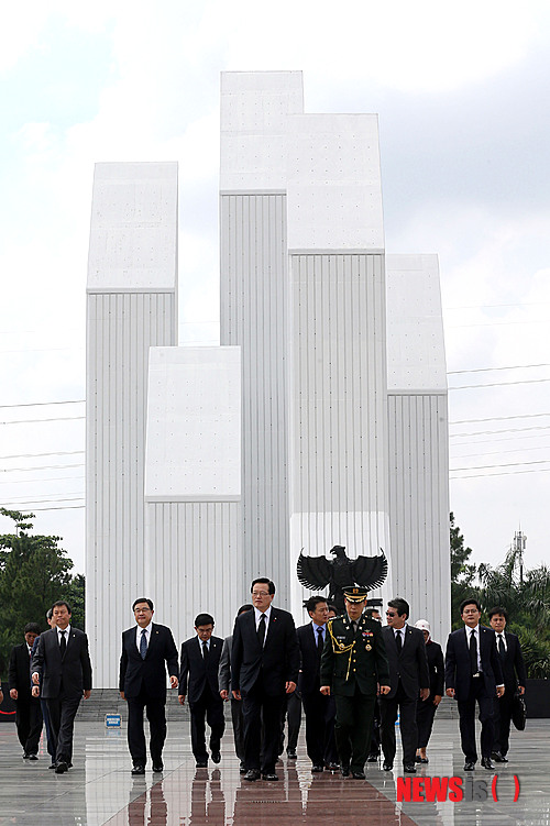 【서울=뉴시스】박동욱 기자 = 인도네시아를 방문 중인 정의화 국회의장 등 방문단이 22일 오전(현지시각) 자카르타 영웅묘지 찾아 둘러보고 있다. 2014.12.22. (사진=국회대변인실 제공)
