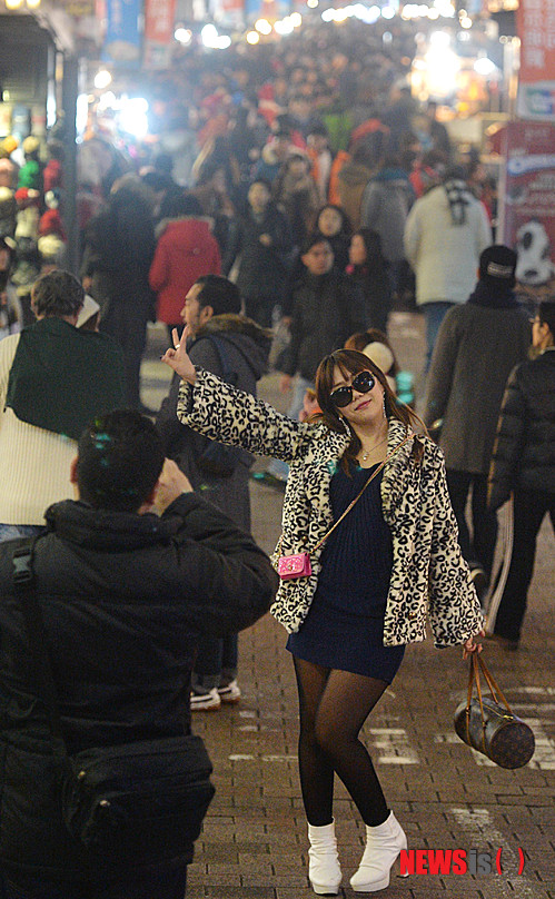 【서울=뉴시스】박문호 기자 = 외국인 관광객이 1400만 명을 넘어선 29일 저녁 서울 명동 거리에서 많은 시민과 관광객들이 사흘 앞으로 다가온 2015년을 앞두고 연말 분위기를 즐기고 있다. 2014.12.29.