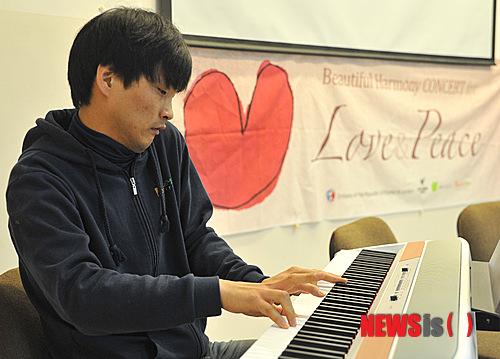 뇌성마비 피아니스트 김경민씨가 준비한 곡을 연주하고 있다.  2014.12.29.