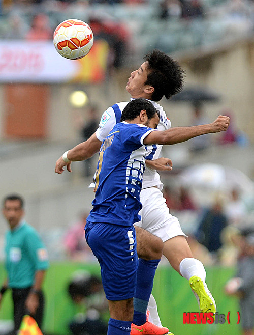 【캔버라(호주)=뉴시스】고범준 기자 = 13일 오후(현지시각) 호주 캔버라 스타디움에서 열린 '2015 호주 아시안컵 A조 조별리그 2차전' 대한민국과 쿠웨이트의 경기에서 한국 김민우가 쿠웨이트 수비를 피해 헤딩하고 있다. 2015.01.13.