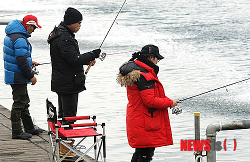 【화천=뉴시스】예상철 기자 = 24일 오전 강원 화천군 화천읍에서 '2015 산천어축제'가 열리는 가운데 낚시터에서 관광객들이 낚시를 하고 있다. 2015.01.24.