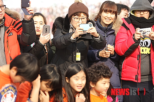 【화천=뉴시스】예상철 기자 = 24일 오전 강원 화천군 화천읍에서 '2015 산천어축제'가 열리는 가운데 산천어 맨손잡기 이벤트에서 관광객들이 사진을 촬영하고 있다. 2015.01.24.