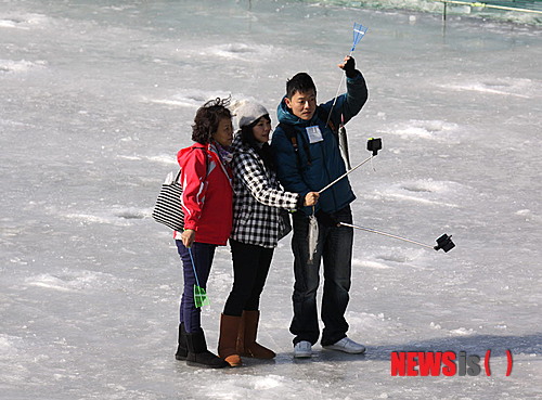 【화천=뉴시스】한윤식 기자 = 강원 화천군 화천천 일대에서 열리는 산천어축제가 연일 성황을 이루고 있는 가운데 30일 동남아 관광객들이 얼음낚시를 즐기고 있다.2015.01.30.