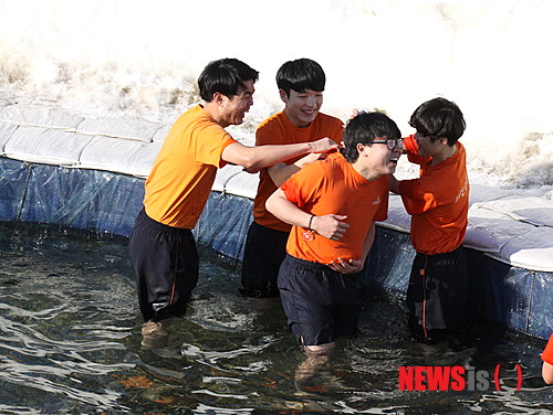 【화천=뉴시스】한윤식 기자 = 강원 화천군 화천천 일대에서 열리는 산천어축제가 연일 성황을 이루고 있는 가운데 30일 관광객들이 산천어 맨손잡기를 즐기고 있다.2015.01.30.