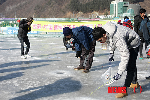 【화천=뉴시스】예상철 기자 = 31일 오전 강원 화천군 화천읍에서 '2015 화천산천어축제'가 열린 가운데 외국인낚시터에서 외국인들이 낚시를 하고 있다. 2015.01.31.