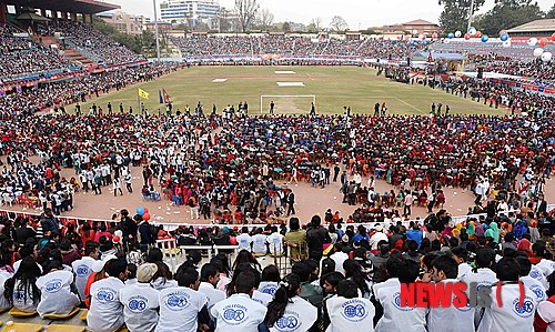 【네팔=뉴시스】이종철 기자 = 21일 가정연합이 네팔 290여개의 교육단체 후원으로 네팔 카트만두에 있는 축구 국가대표팀 홈 구장인 다사라스 랑가살라 스타디움에서 개최한 '다문화가정교육 평화축제'에 다양한 종교와 문화를 가진 수 많은 사람들이 평화를 위한 한 마음으로 입장해 경기장을 채우고 있다.