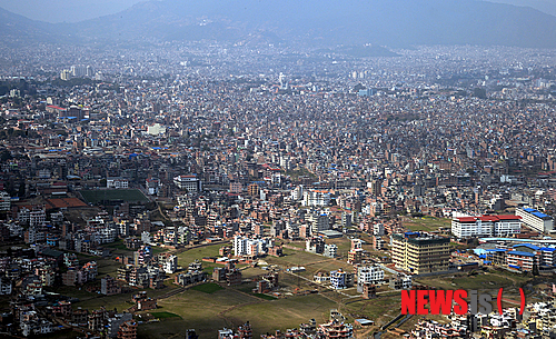 【네팔=뉴시스】이종철 기자 = 지구상에서 하늘과 가장 가까이 맞닿은 세계의 지붕 히말라야 산맥. 에베레스트를 비롯한 8000m 이상 봉우리가 눈쌓인 설산으로 영적인 경관을 보여주면서 정복과 성취보다는 대자연 앞에 겸손해지는 법을 알려주고 있다. 히말라야 고봉과 가파른 산악마을을 지나면 산들이 주위를 둘러싸고 있는 수도 카트만두가 내려다 보인다.