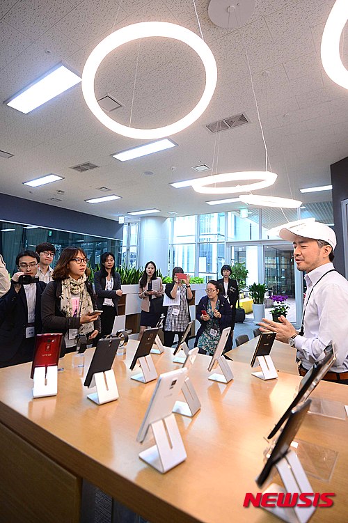 【서울=뉴시스】전신 기자 = 8일 서울 대치동 오토웨이타워에서 열린 구글 '캠퍼스 서울' 개관 기자간담회에서 취재진들이 내부 공간을 둘러보고 있다. 구글이 만든 창업가 공간 '캠퍼스 서울'은 전 세계 세 번째 아시아 최초로 설립된 구글 캠퍼스로 국내 스타트업의 해외 진출을 돕고 여성 및 엄마 창업가 생태계를 활성화 하고자 하는 비전을 갖고 있다. 2015.05.08.
