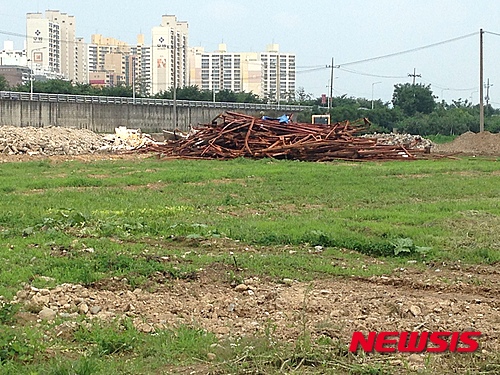 【영천=뉴시스】김재원 기자 = 15일 경북 영천시 완산동 아파트 건설부지에 폐 건축자재들이 방치돼 있어 인근주민들의 민원이 되고 있다.