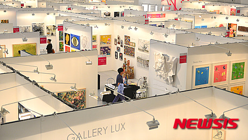 【서울=뉴시스】김선웅 인턴기자 = 11일 오전 서울 중구 동대문디자인플라자(DDP)에서 관람객들이 어포더블 아트페어에 전시된 작품을 관람하고 있다.