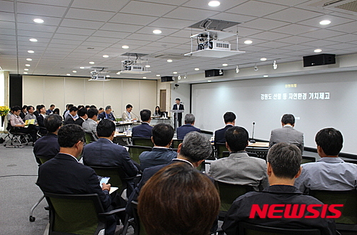 【춘천=뉴시스】박혜미 기자 = 1일 강원 춘천시 강원발전연구원(원장 육동한)에서 '강원도 산림 등 자연환경자원 가치제고'를 주제로 도의 산림과 자연환경에 대한 지속 활용방안에 대해 논의하는 강원포럼이 개최되고 있다. 2015.010.01. (사진=강원발전연구원 제공)
