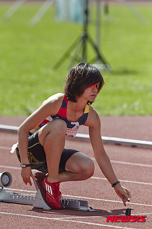 【서울=뉴시스】6일(현지시각) 대만 타오위안에서 열린 타오위안아시아태평양농아인경기대회 육상 여자 200m 결승전에서 김하나가 출발 준비를 하고 있다. 2015.10.07. (사진=대한장애인체육회 제공)