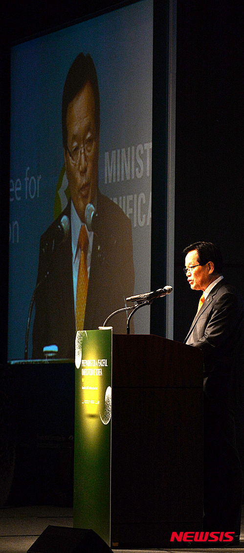 【서울=뉴시스】박주성 기자 = 정의화 국회의장이 13일 오전 서울 웨스틴 조선호텔에서 열린 한반도 평화통일을 위한 국제협력 컨퍼런스에서 축사를 하고 있다. 2015.11.13.