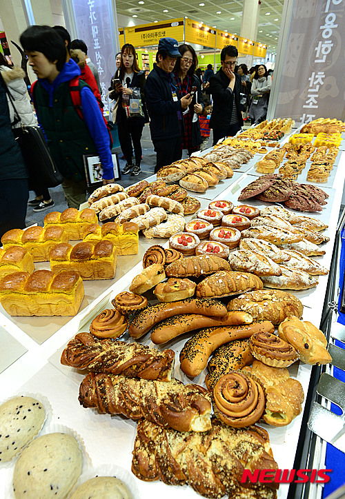 【서울=뉴시스】임태훈 기자 = 18일 오후 서울 강남구 삼성동 코엑스에서 열린 2015 서울국제식품산업전(Food Week Korea) 국제빵과자 페스티벌을 찾은 시민들이 다양한 종류의 빵을 살펴보고 있다.