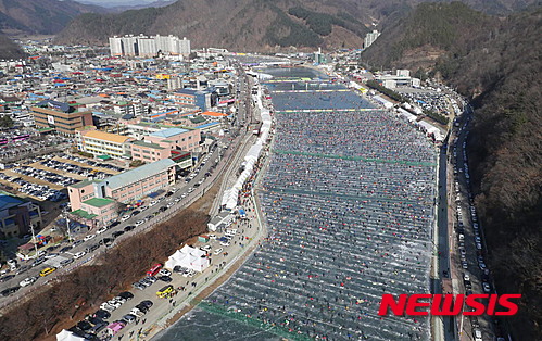 【화천=뉴시스】한윤식 기자 = 강원 화천 산천어축제 개막 첫날인 9일 이른 아침부터 수많은 인파가 몰려 인산인해를 이루고 있다. 2016.01.09.(사진=화천군청 제공)