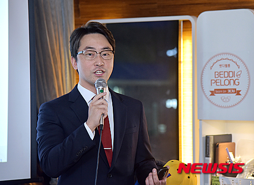 【서울=뉴시스】29일 서울 청담동 바이라 뷰티 헤어살롱에서 열린 벳디팰롱 론칭 행사에서 구형우 네이트라코코 대표가 브랜드 및 제품을 소개하고 있다. 2016.01.29. (사진=벳디팰롱 제공)