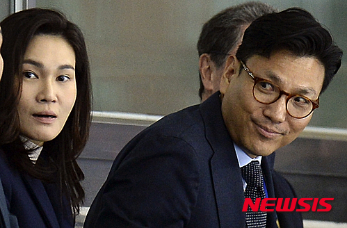【서울=뉴시스】최진석 기자 = 13일 서울 양천구 목동아이스링크에서 열린 2016 국제빙상연맹(ISU) 세계 쇼트트랙 선수권 대회를 찾은 이서현(왼쪽) 삼성물산 패션부문장 사장이 남편인 김재열 대빙상경기연맹 회장과 경기를 관람하고 있다. 2016.03.13.