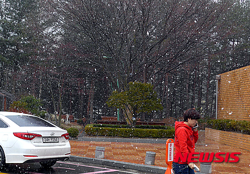 【태백=뉴시스】홍춘봉 기자 = 강원지방기상청은 23일 오후 2시30분을 기해 강릉·양양·속초·고성·인제·홍천·평창 산간에 대설주의보를 발령한 가운데 해발 703m 겨울도시 태백시 청사 일대에 '춘설'이 내리고 있다. 2016.03.23.
