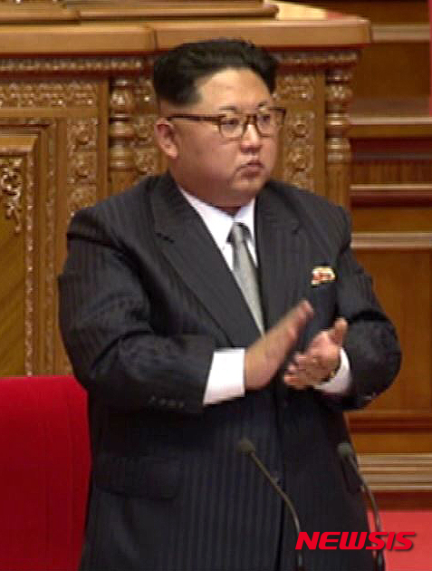 김정은 위원장은 "당 대회는 영광스러운 김일성 김정일 당으로서 새로운 역사적 이정표를 마련할 것"이라고 밝혔으며 "수소탄 시험과 광명성 4호 발사 성공은 전례 없는 성과"라고 평가했다. 2016.05.06. (사진= 조선중앙TV 캡쳐)