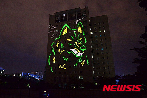 건국대 영화애니메이션학과 교수와 학생들이 '공감각'을 주제로 만든 영상은 오는 13일까지 저녁 8시부터 새벽 1시까지 새천년관 외벽에 상영된다. 2016.05.09.