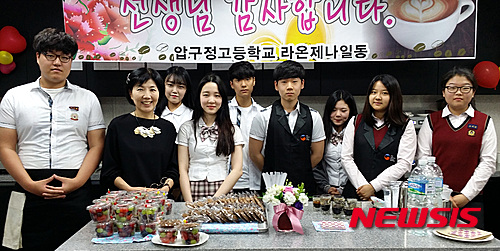 압구정고등학교는 '직업 교육과정을 희망하는 학생들을 대상으로 하는 대안교실로 라온제나를 운영해 16명의 학생들이 매주 금요일 3~4교시 바리스타 수업을 받는다'고 전했다. 2016.05.12. (사진=압구정고등학교 제공)