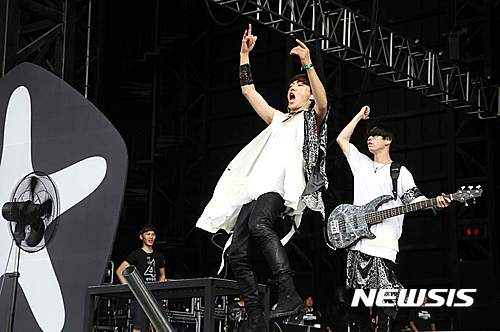 【서울=뉴시스】14일 오후 인천 송도달빛축제공원 메인무대에서 열린 2016문화관광 유망축제‘인천 펜타포트 락 페스티벌’에서 '사무라이 하트(Some Like It Hot!!)'로 유명한 일본의 4인조 록밴드 스파이에어(Spyair)의 리드보컬 이케가 격정적인 공연 펼치고 있다. 지난 12일부터 14일까지 3일간 열린 이번 공연에는 국내외 80여개 유수 락 그룹들이 참여해 열정적인 무대를 선보였다. 2016.08.15. (사진=인천시 제공)