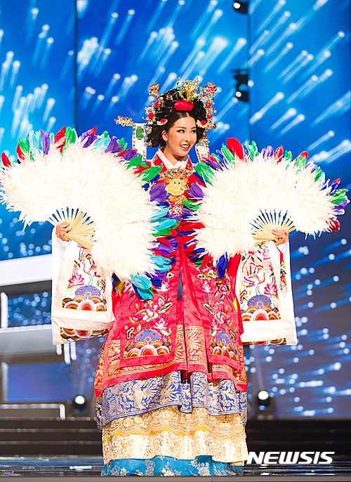 【마닐라=뉴시스】미스유니버스 코리아 김제니(24)가 제65회 미스유니버스 선발대회 사전심사를 받았다. 더 이상 화려할 수 없는 무대용 한복 차림으로 스포트라이트를 받았다. 각국 내셔널 디렉터는 “코리아 역대 최고의 내셔널 코스튬”이라고 입을 모았다.