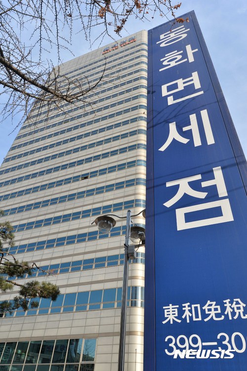 【서울=뉴시스】고승민 기자 = 동화면세점이 경영권 매각을 추진중인 것으로 알려지면서 최악의 경우 면세점 특허 반납과 청산 가능성이 대두되고 있다. 사진은 31일 오전 서울 동화면세점 모습.