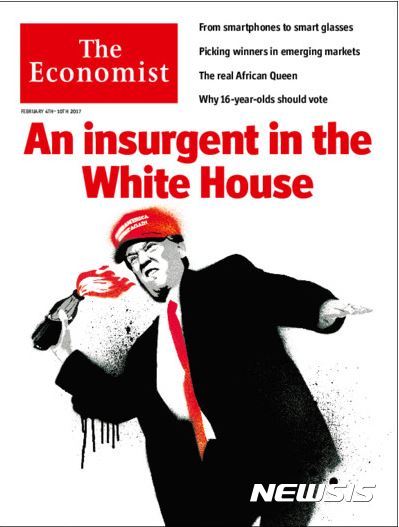【서울=뉴시스】도널드 트럼프 미국 대통령이 화염병을 던지는 모습을 묘사한 영국 경제전문주간지 이코노미스트의 4일(현지시간)자 표지. <사진출처:이코노미스트 홈페이지> 2017.02.05