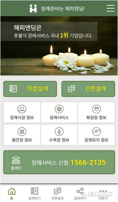 【서울=뉴시스】후불식 장례서비스 선두업체인 해피엔딩주식회사(대표이사 박덕만)가 "장례준비는 해피엔딩!"이란 모바일앱을 2월 말 출시하고 본격적인 보급에 나섰다. 이 장례준비 모바일앱은 임종 전에 장례식장, 화장장, 장묘시설 등을 미리 선택하여 장례비용 및 장례절차를 사전에 설계하도록 구성되어 있다.